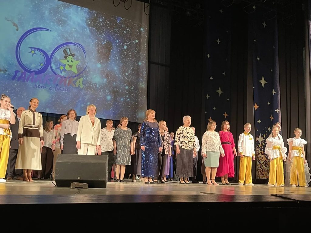 В заключение праздника прозвучала авторская песня педагога Джаз Елены Валерьевны «С юбилеем, Галактика» в исполнении хора гитаристов, посвященная 60-летнему Юбилею Центра внешкольной работы «Галактика».