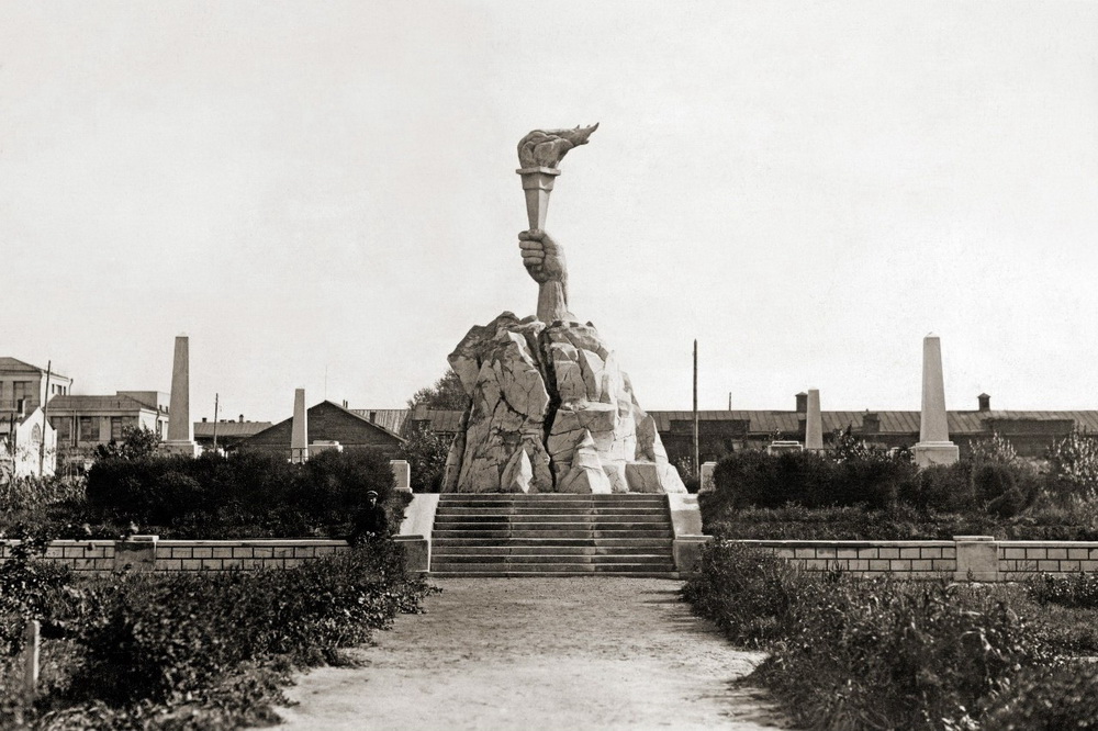 Есть в центре Новосибирска место, которое практически уже столетие как стало воинским захоронением участников «красного» и «белого» движений. Место это называют по-разному: сквер Героев Революции, сквер Жертв Революции. А его официальное наименование — «Мемориальный сквер павших в годы Гражданской войны». История этого памятного комплекса началась в 1920 году. Тогда 22 января на участке бывшей базарной площади состоялось торжественное захоронение погибших людей, «признанных многими партийными товарищами за активных деятелей нашей власти». В братскую могилу опустили тела 104 человек, которые обнаружили в основном в городской тюрьме, а также в оврагах реки Каменки. Месяцем ранее, в декабре 1919-го, перед бегством белые убили всех своих заключённых — в основном одноармейцев. Как раз накануне прихода красных войск они под областническими лозунгами подняли восстание против главнокомандующего Колчака. По сути, это была попытка эсеровского переворота. Часть восставших погибла в уличных столкновениях, часть расстреляли на месте, часть арестовали. Это именно в основном они заполняли городскую тюрьму, где при отступлении их и уничтожили вместе с остальными: большевиками и случайными нарушителями. Из убитых удалось опознать лишь 37 человек. Среди них — председатель ново-николаевского Совета рабочих, солдатских и крестьянских депутатов Василий Романович Романов, активисты большевистского подполья, два солдата и пять офицеров Барабинского полка. Судя по сохранившимся актам с описанием военной одежды, большинство оставшихся тоже были «барабинцами». Все они теперь герои революции. Братская могила сразу стала местом пропаганды. Здесь проходили митинги, памятные церемонии. В пятую годовщину Октябрьских торжеств, 7 ноября 1922 года, открыли монумент памяти жертв революции. В руке, вырывающейся из камня, крепко сжат горящий факел. Кстати, пламя должно было быть изготовлено из полого красноватого стекла и «пылать» в темноте за счёт внутреннего электрического освещения. Монумент жертв революции (1930-е годы). В октябре 1927-го на мемориале похоронили полного кавалера Георгиевского креста, одного из основателей пограничной службы страны Петра Eфимовича Щетинкина, того самого, кто шестью годами ранее пленил чёрного барона Унгерна. В августе 1934-го на могиле вместо временного установили мраморный памятник со звездой. После его поменяли на бронзовый бюст, изображавший легендарного партизана в «кубанке» и бекеше. Этот вариант простоял до 1957 года. После войны на участке погребли ещё одного революционера, но уже французского — последнего ветерана Парижской коммуны Адриена Лежена, который с началом Великой Отечественной был эвакуирован в Новосибирск и умер здесь 9 января 1942 года в возрасте 94 лет. В сквер прах перенесли с городского кладбища в 1946-м, а в 1971-м Лежена перезахоронили в Париже, на Пер-Лашез. На месте опустевшей могилы в сквере сегодня лежит надгробная плита-памятник (кенотаф). Кенотаф в сквере Героев Революции. Торжественная мемориальность пришла на территорию уже к 40-летию Октябрьской революции. В июле 1957-го решением исполкома это место переименовали в сквер Героев Революции. Тогда же сюда с кладбища в Берёзовой роще перенесли останки руководителей ново-николаевских большевиков. Они обрели покой за бывшей эстрадой. А позднее на центр