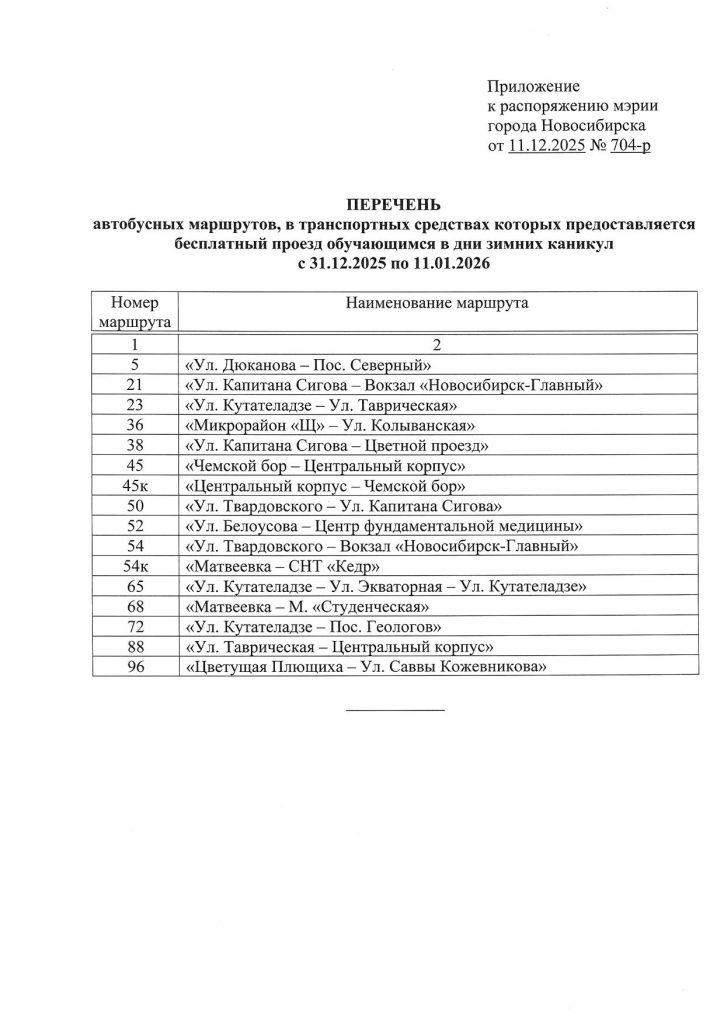 на территории города Новосибирска, в муниципальном пассажирском транспорте города Новосибирска организован в дни зимних каникул.