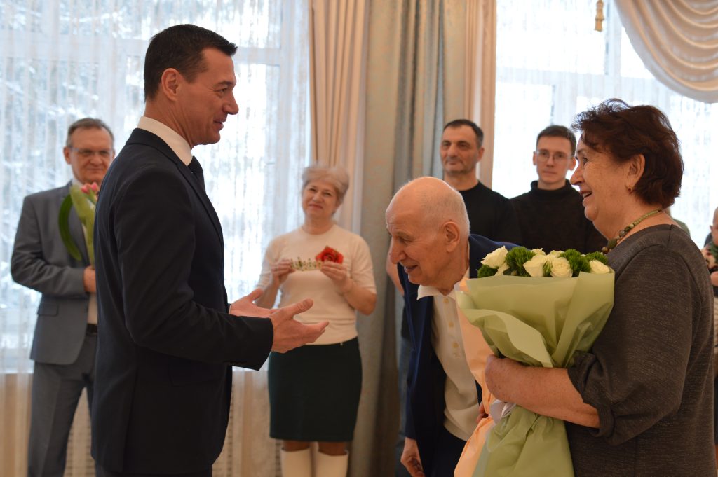 С почетной датой юбиляров лично поздравил глава администрации Дзержинского района Константин Соболев. Глава выразил слова искреннего восхищения долголетием их союза, пожелав супругам крепкого здоровья, благополучия и еще многих лет счастливой жизни в окружении близких.