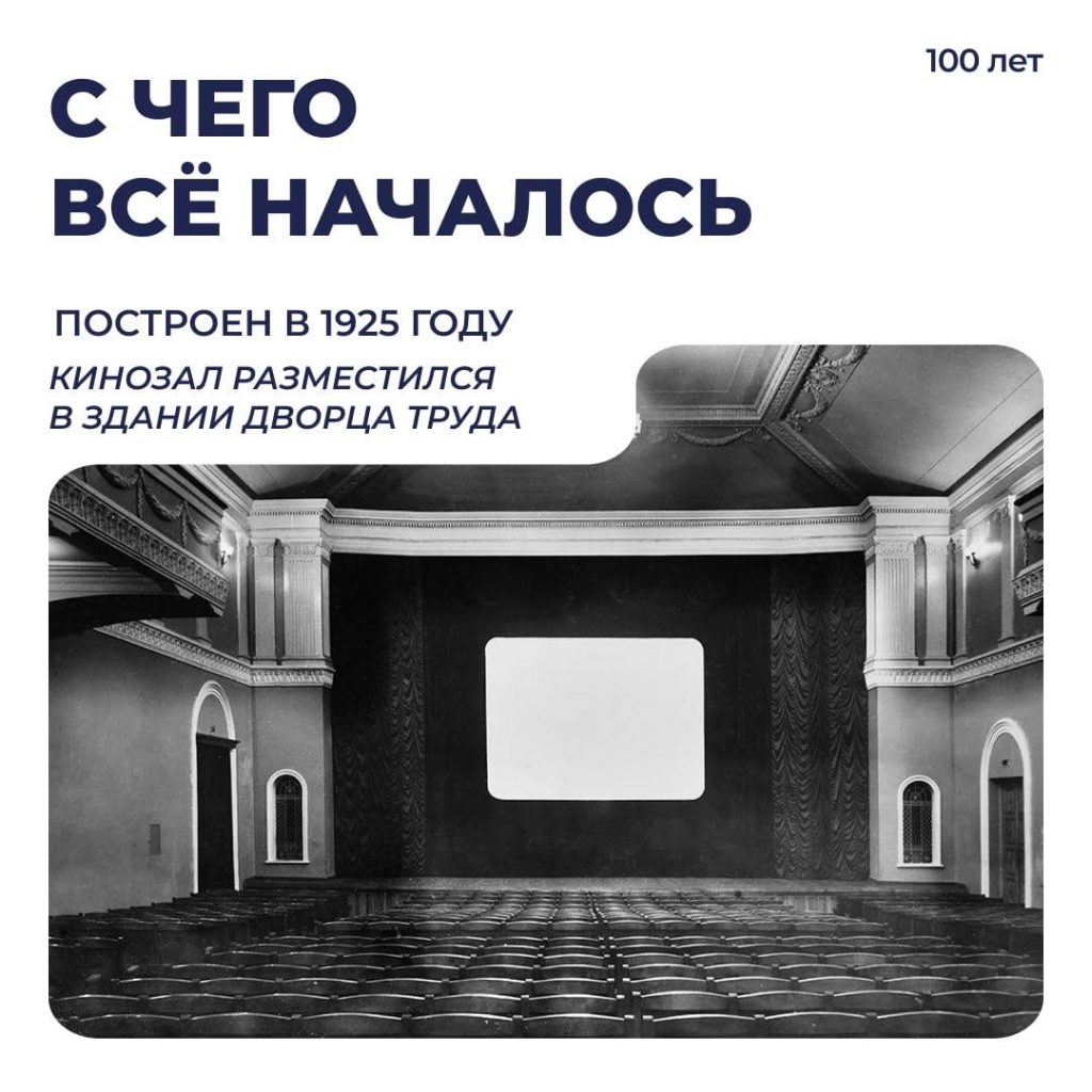 15 января 1926 года здесь начал работу кинозал «Пролеткино» — один из первых стационарных кинотеатров города. Его планировали как часть большого комплекса Дворца труда. Проект реализовали не полностью, но кинозал сразу стал популярным.В 1936 году здание перестроили и переименовали в «Октябрь». В годы Великой Отечественной войны кино здесь не показывали — помещения занял эвакуированный из Ленинграда завод, где выпускали боеприпасы.