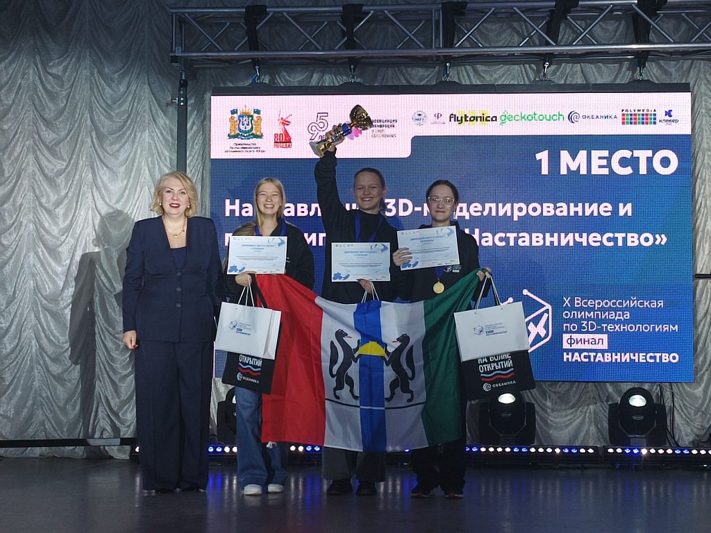 Победителем олимпиады «3D-моделирование и прототипирование» стала команда МАОУ Лицей №113, в которую вошли Прохорова Дарья, Цветкова Алиса и наставник – студентка Новосибирского авиационного технического колледжа им. Б. С. Галущака Тышкевич Ольга. Руководители команды – учителя технологии МАОУ Лицей № 113 Казанцева Марина Витальевна, Гусельников Семен Васильевич. Серебро у команды из города Москва, а бронза у команды из города Красноярск.