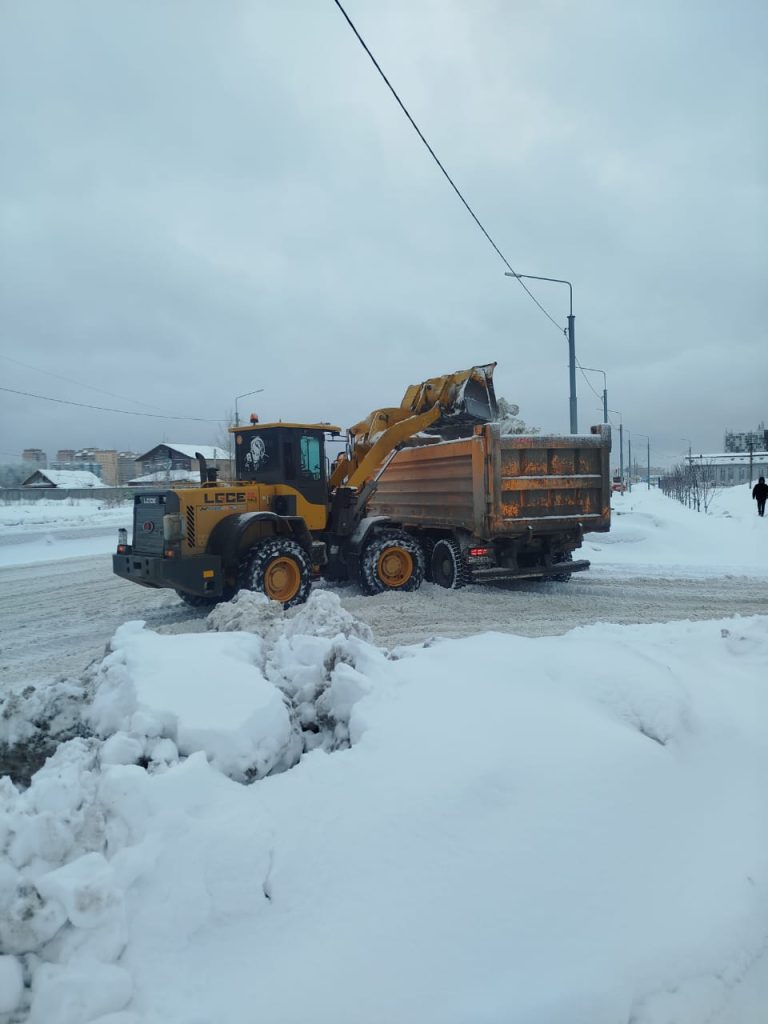 Сегодня в Дзержинском районе убирают снег на Гусинобродском шоссе, проспекте Дзержинского, улицах Толбухина, Республиканской.