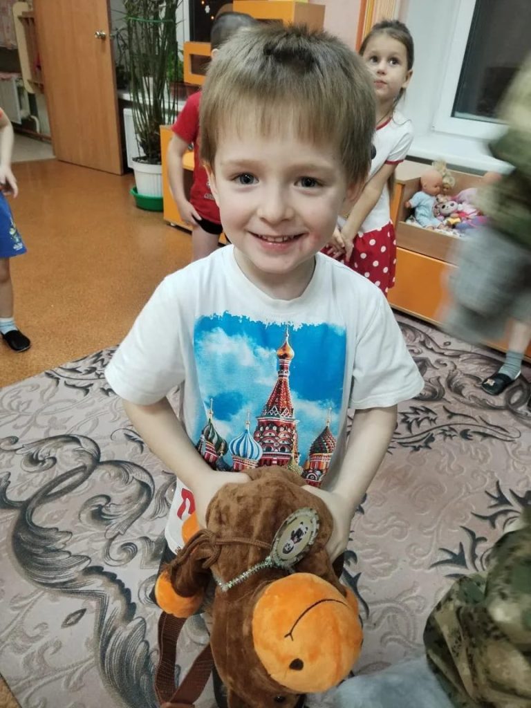 По традиции в преддверии наступающего Нового года наш ростовой Енот-Патриот приходит к детям, чьи папы сейчас находятся в зоне СВО и дарит им подарки от детского сада. Вот и в этот раз он пришел в группы «Дюймовочка», «Солнышко», «Сказка», «Ручеек», «Капитошка» и «Паровозик из Ромашково» и подарил 11 воспитанникам рюкзачки-лошадки со сладостями. Радости ребятишек не было предела! И только 6-летняя София, у которой папа недавно погиб, увидев солдатскую форму Енота, сначала расплакалась, а потом кинулась к нему, обхватила ручонками, схватила лошадку и прошептала: «Это же мне папа передал, правда?» У всех присутствующих на глаза навернулись слезы. В этот день дети, как никогда, с нетерпением ждали своих мам, чтобы рассказать им о замечательном подарке, который каким-то образом связан с их папами, которые защищают нашу Родину!