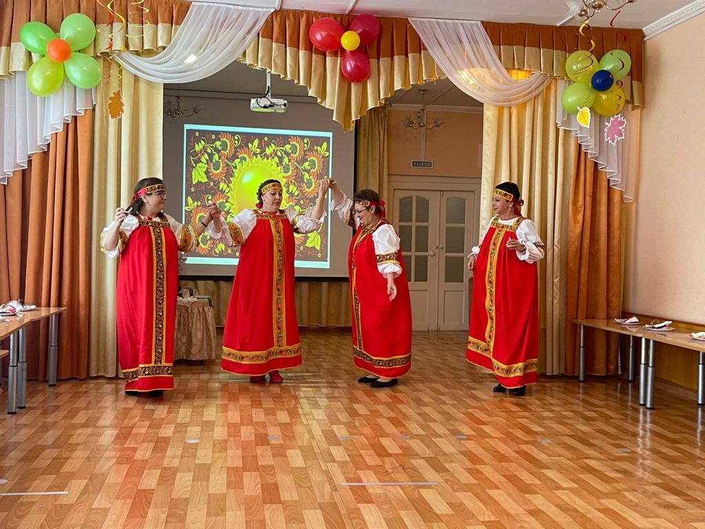 Педагоги детского сада очень увлеченно и азартно исполнили танец с русскими народными музыкальными инструментами – свистульками.