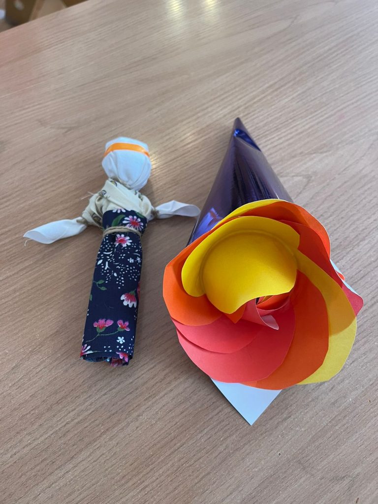 Сюрпризом для гостей стал мастер – класс, проведенный воспитателем, Фроловой Оксаной Николаевной, по изготовлению народной игрушки куклы – оберега Бессонница со всеми участниками встречи. Ветераны прониклись идеей изготовления куколки и каждый своими руками сделал себе неповторимую Бессонницу с надеждой, что куколка поможет теперь ему решить проблему с засыпанием и будет оберегать сон своего хозяина в течение всей ночи.