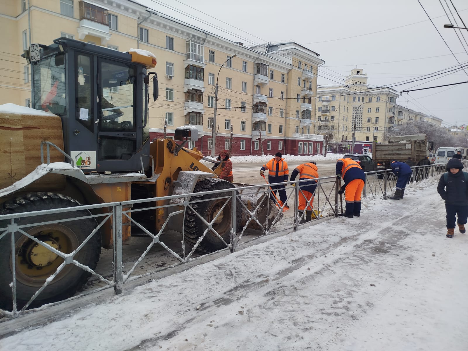 На улично-дорожной сети города продолжаются работы по ликвидации зимней скользкости на проезжей части и тротуарах, образовавшейся в результате резкого понижения температуры, а также по погрузке
