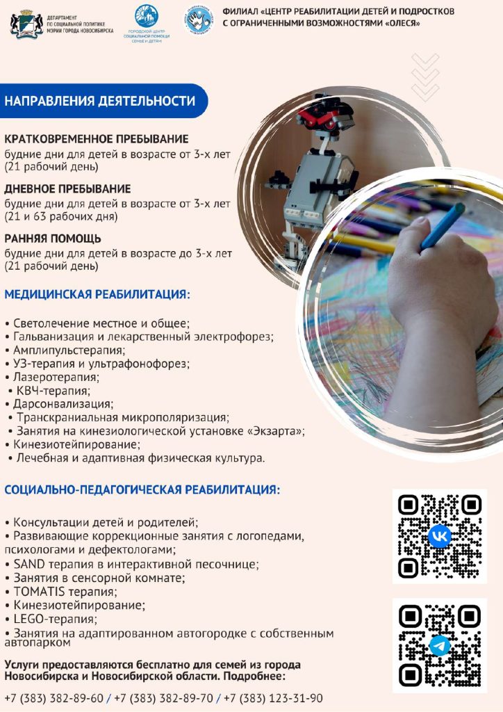 - Комплексные программы: «Семейный реабилитационный интенсив» для иногородних семей и жителей отдаленных районов.