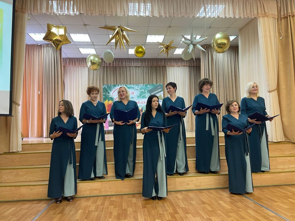 Народный хор учителей гимназии № 15 «Содружество» «Хорошее настроение» порадовал гостей встречи замечательной концертной программой. Открыл концертную программу «Учительский вальс», который погрузил педагогов – ветеранов в чудесные юные годы, проведенные у школьной доски и в кругу любопытных детских глаз. А попурри из всеми любимых песен: «А по камушкам», «Старый клен», «Осенние листья» настолько эмоционально увлекло слушателей — ветеранов, что они стали активно подпевать хору.