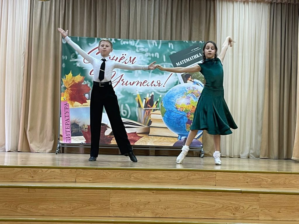 Танцевальный дуэт гимназистов виртуозно исполнил вальс и был отмечен бурными аплодисментами зрителей.