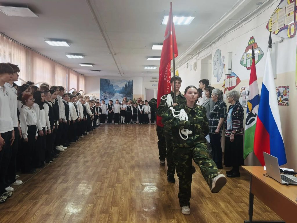 В каждом общеобразовательном учреждении проведены торжественные линейки, которые начинались с торжественного вноса Знамени Победы под Гимн Великой Отечественной войны «Священная война».