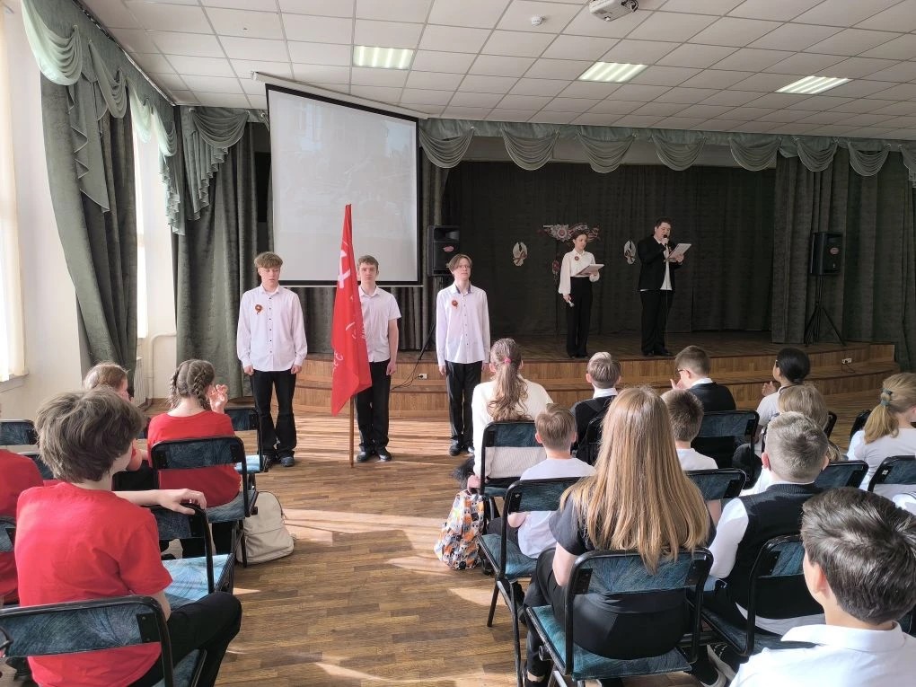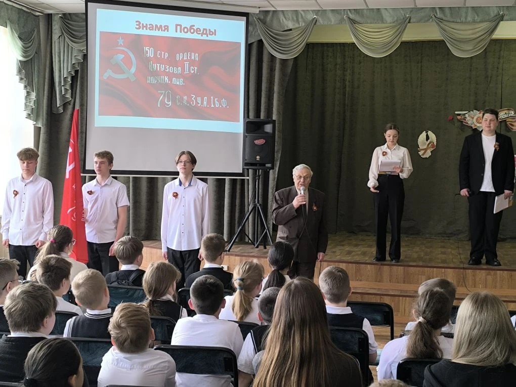 В ходе линейки обучающиеся знакомились с исторической справкой о государственной реликвии России, официальном символе Победы советского народа и его Вооруженных Сил над фашистской Германией в Великой Отечественной войне 1941 – 1945 годов – Знамени Победы.