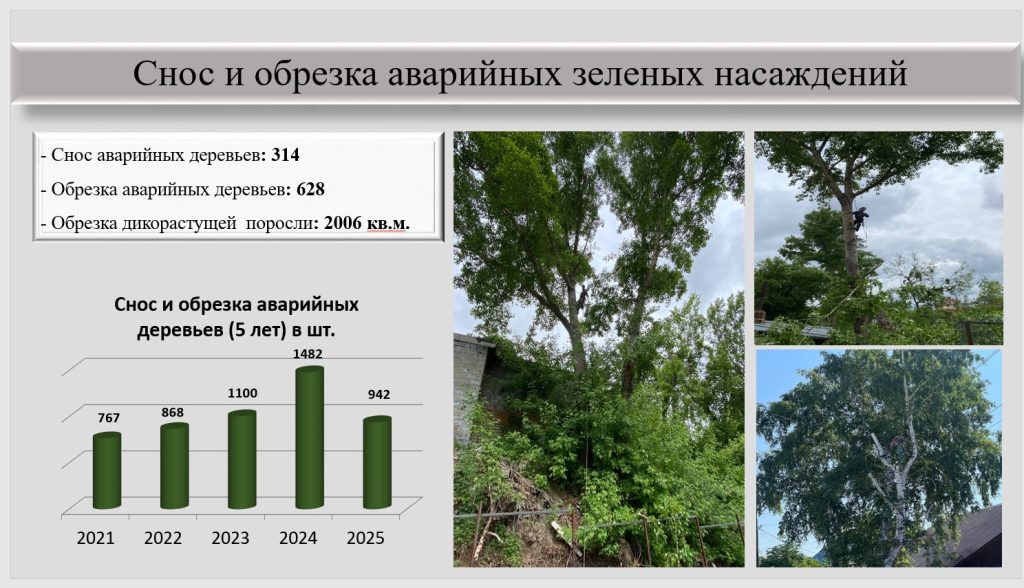 За сезон нами выполнены работы по сносу и обрезке 942 аварийных деревьев.