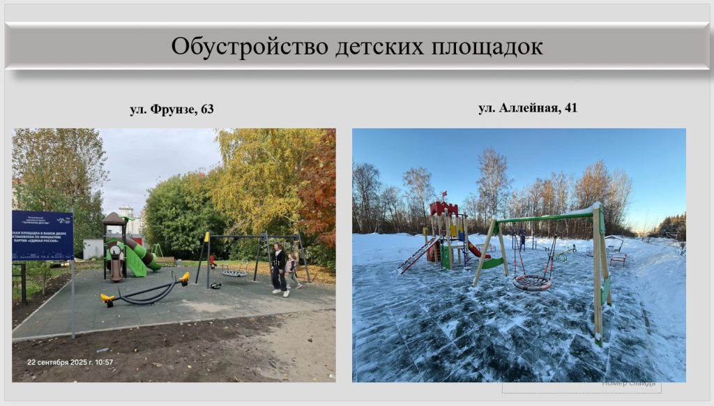 В рамках проекта «Территория детства», обустроены площадки по 5 адресам: