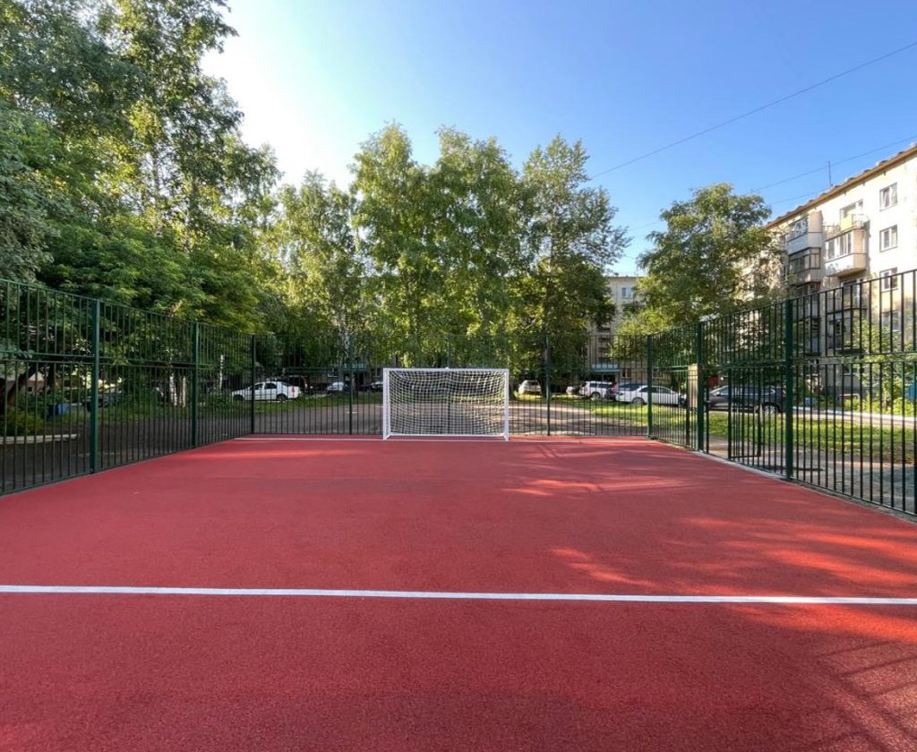 Дополнительно на территории обустроена спортивная площадка на резиновом покрытии, установлены скамейки с урнами.