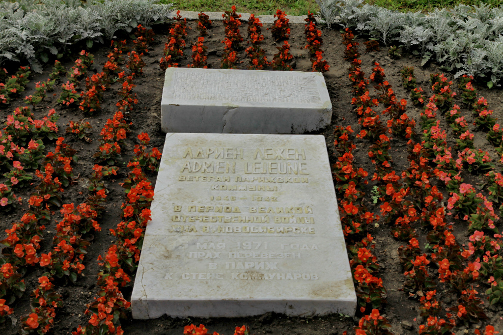 После войны на участке погребли ещё одного революционера, но уже французского — последнего ветерана Парижской коммуны Адриена Лежена, который с началом Великой Отечественной был эвакуирован в Новосибирск и умер здесь 9 января 1942 года в возрасте 94 лет. В сквер прах перенесли с городского кладбища в 1946-м, а в 1971-м Лежена перезахоронили в Париже, на Пер-Лашез. На месте опустевшей могилы в сквере сегодня лежит надгробная плита-памятник (кенотаф).