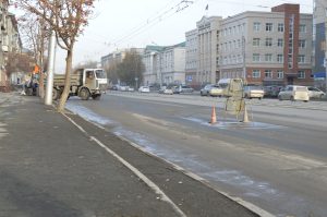 На проблемном участке проспекта Дзержинского, от улицы Трикотажной до улицы Волочаевской, новое асфальтное покрытие. «Здесь проведена комплексная замена ливневой канализации, труб и входных групп. После