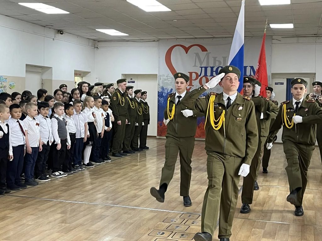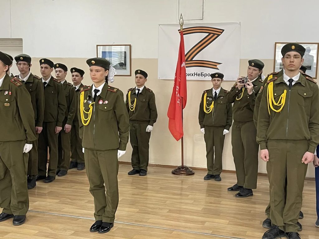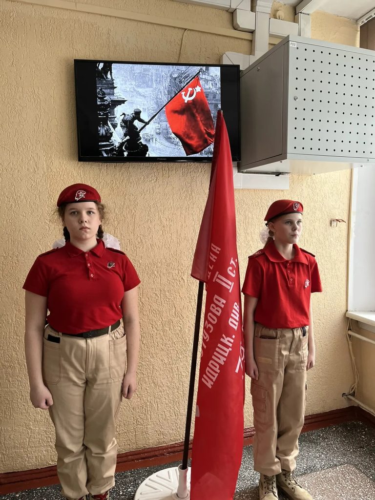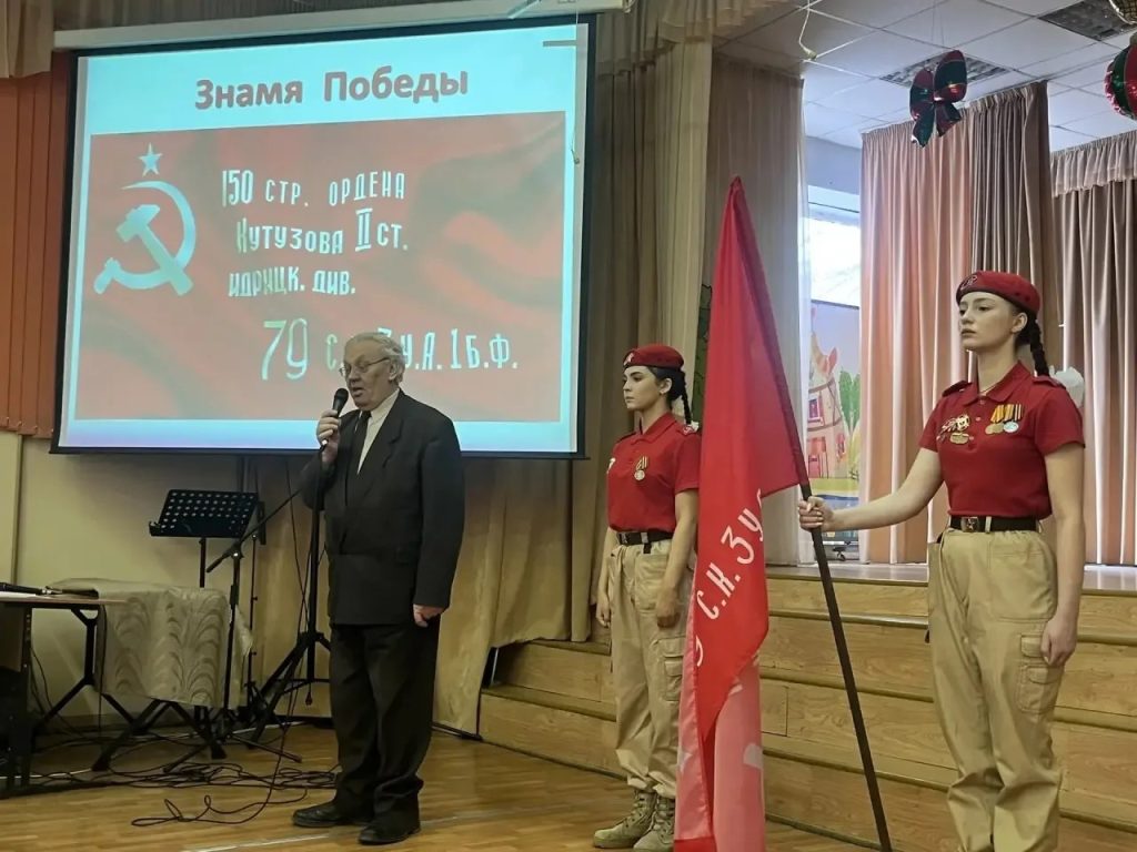Знаменной группой проведен торжественный внос Знамени Победы под Гимн Великой Отечественной войны «Священная война» и размещение его на почетном месте в образовательной организации.