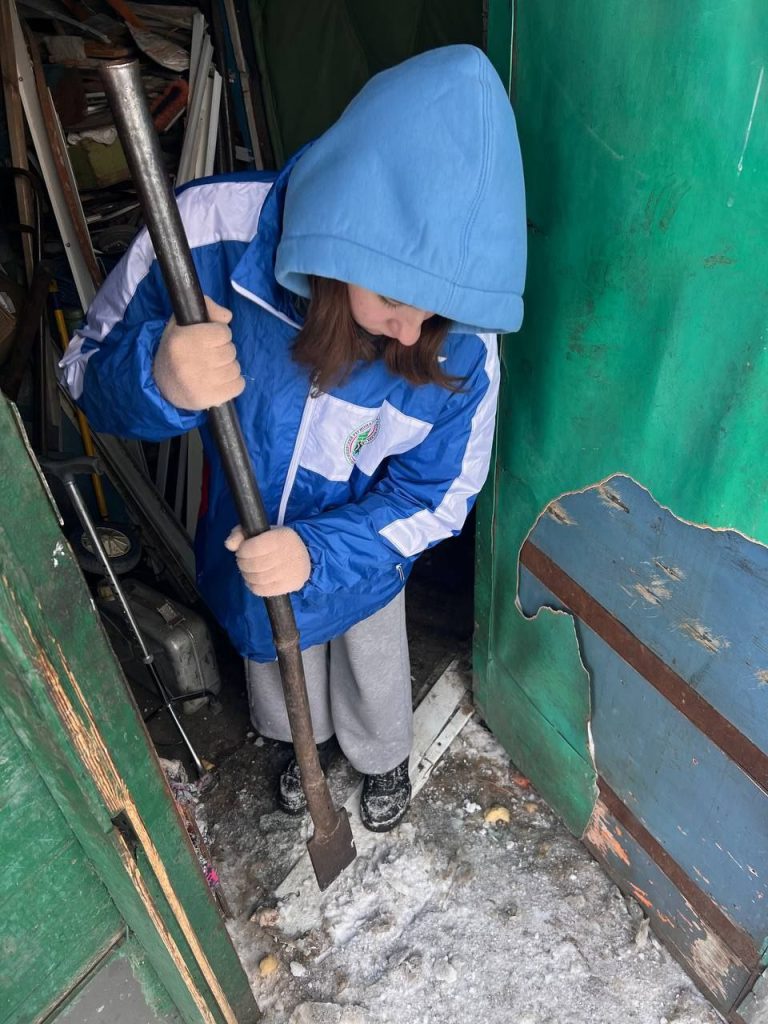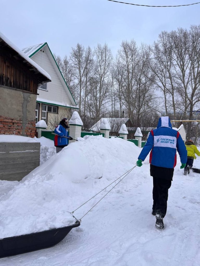 «Снежный десант» — это не просто уборка снега. Это живой пример преемственности поколений и сплоченности. Молодые люди работают слаженно и быстро: там, где одному человеку потребовался бы целый день, отряд справляется за час.