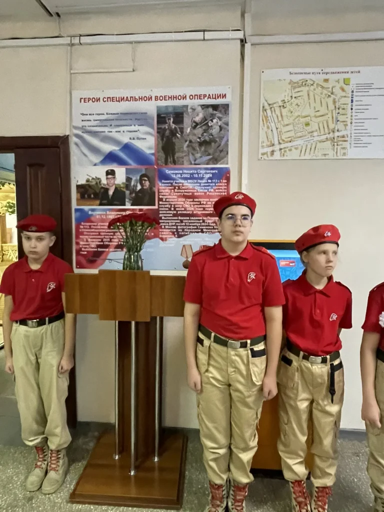 В День Воинской Славы России – в День Героев Отечества в МАОУ Лицей № 113 проведена торжественная церемония открытия мемориального стенда – памятного знака, посвященного выпускникам лицея: Верчикову Владимиру Олеговичу (погиб 21.03.2025 г.) и Семенову Никите Сергеевичу (погиб 10.11.2024 г.), погибшим в ходе специальной военной операции.