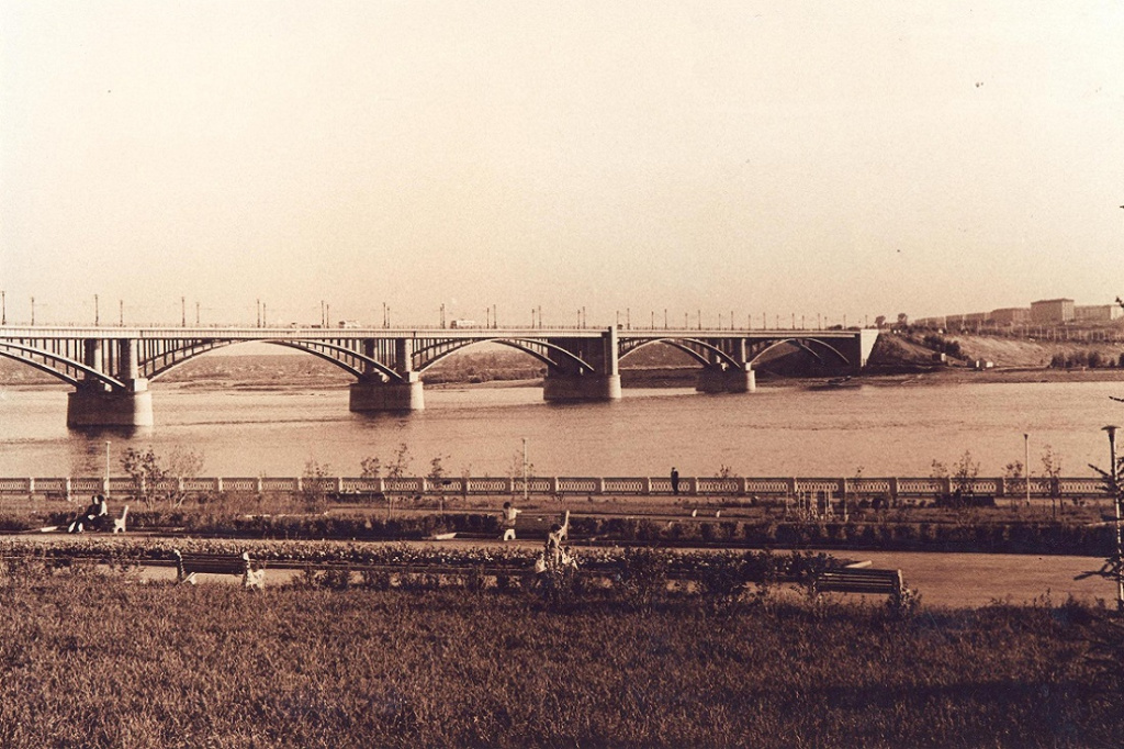 Вид на коммунальный мост с набережной на правом берегу. Фото: музей Новосибирска